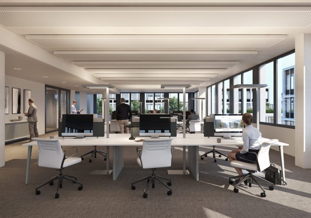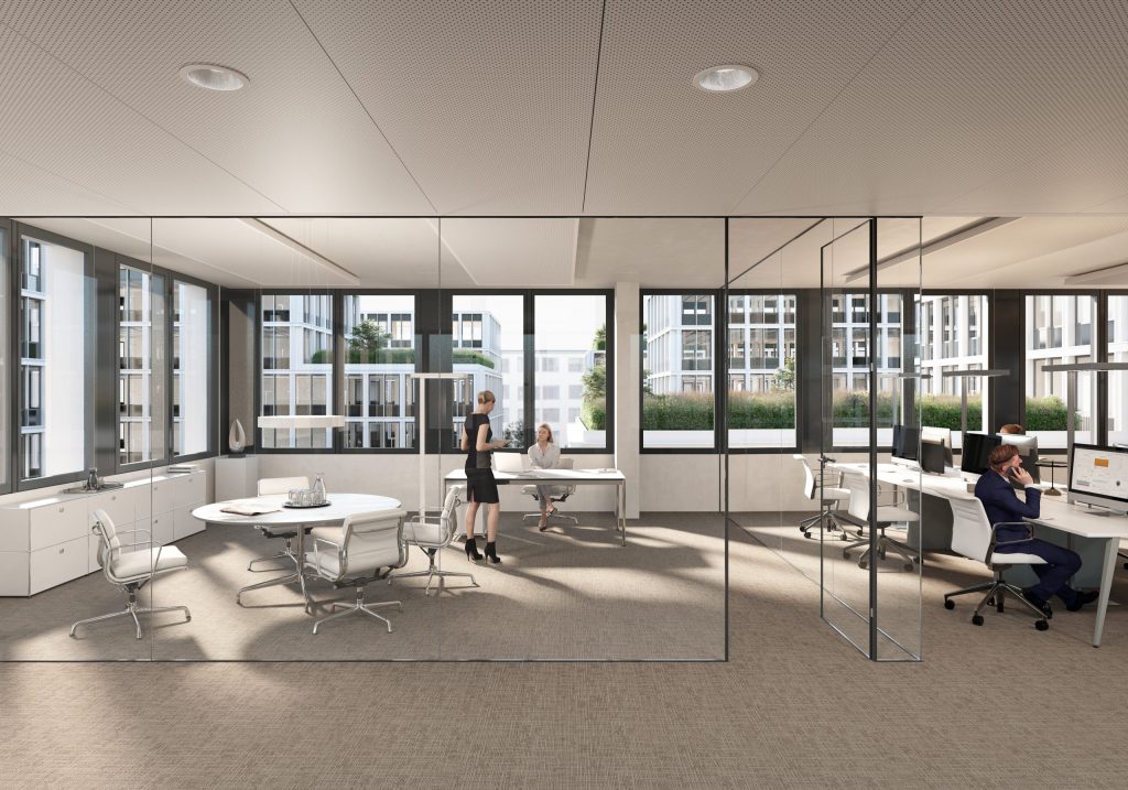 Das Haus 1 ist als geradliniger Riegel konzipiert, während die Häuser 2-4 eine H-Form aufweisen, in deren mittlerem Riegel ausreichend Platz für Besprechungsräume vorgesehen ist. Die freien Grundrisse der Büroflächen ermöglichen eine flexible Nutzung mit Open Space-Bereichen, Kombibüros und klassischen Zellenbüros. Besonderen Wert legt die TAS auf die Nachhaltigkeit. Das Gebäude erhält mind. das Zertifikat LEED Gold, wird im KfW 55-Standard errichtet, erhält eine Dachbegrünung und wird u. a. mit einer Photovoltaikanlage versorgt. Hinzu kommt ein modernes Mobilitätskonzept mit Car- und Bike-Sharing sowie E-Ladestationen. Der Baubeginn wird im Mai 2020 erfolgen. Die Fertigstellung ist für Ende 2023 vorgesehen.