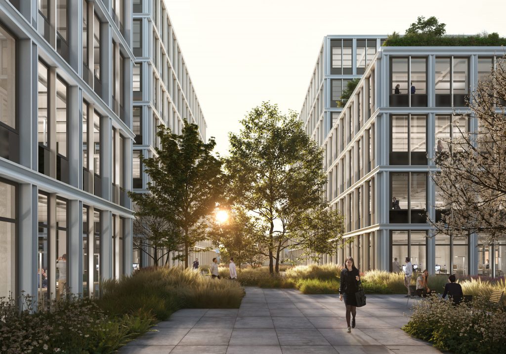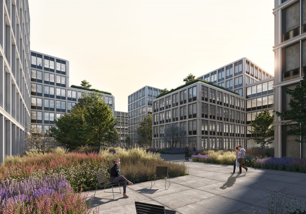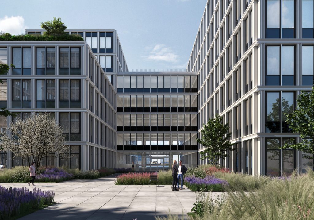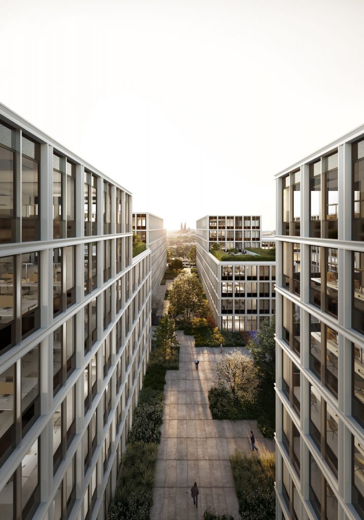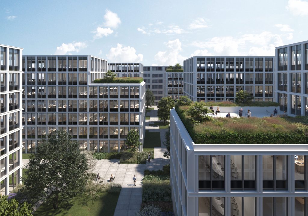 Der moderne Bürokomplex besteht aus vier Häusern mit rund 45.000 m² oberirdischer Bruttogeschossfläche. Darunter befindet sich auf dem Großteil des Grundstücks eine zweigeschossige Tiefgarage mit ca. 700 PKW-Stellplätzen und etwa 400 Fahrrad-Stellplätzen. Als Generalplaner hat die TAS das Büro bicon gewonnen, in deren Auftrag TIM HUPE für die Architektur verantwortlich ist.